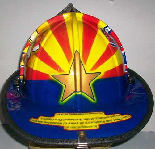 "Dale,The helmet arrived yesterday afternoon with no issues or concerns. The helmet looks great and I’m looking forward to presenting it to the outgoing chief Saturday night in front of an audience of approximately three hundred people. This will certainly be a memorable moment for the chief. I’ll try to send you some photos of the event. Thanks again for an outstanding job.